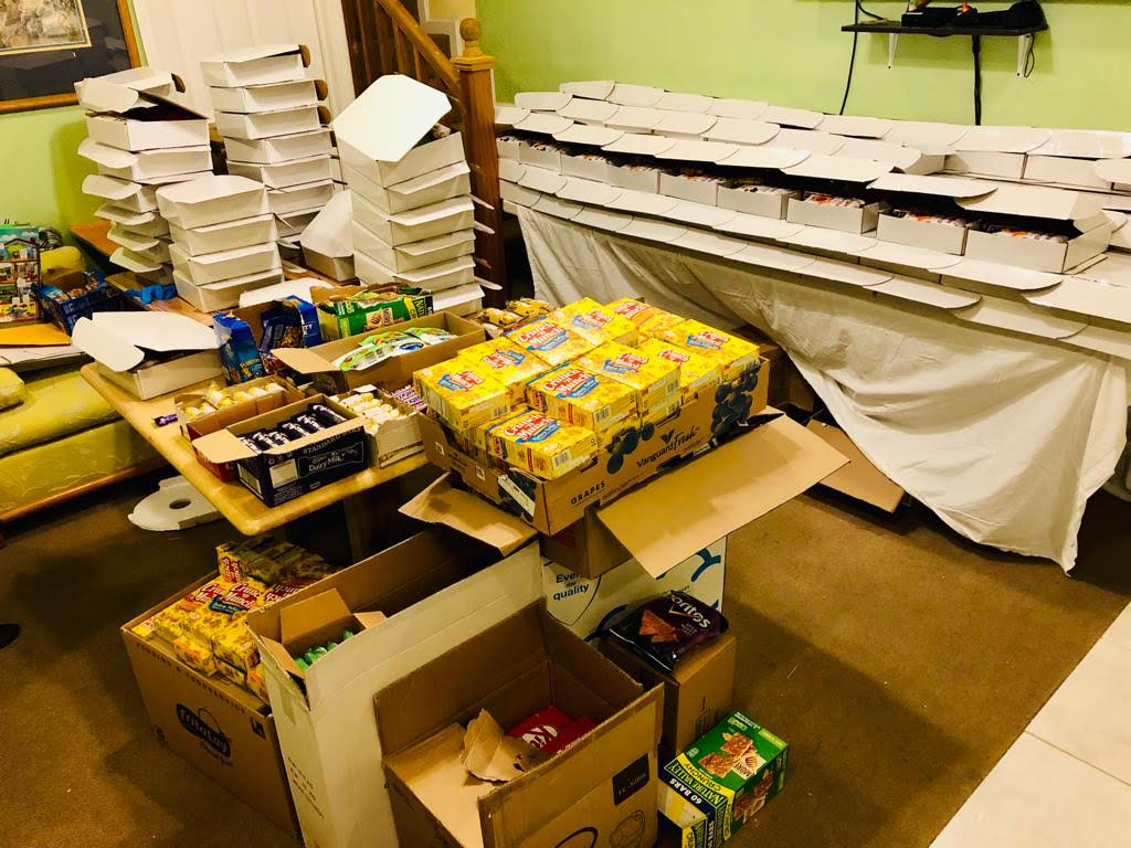 Treats are ready to pack in each box orderly to complete the 145 gifts.