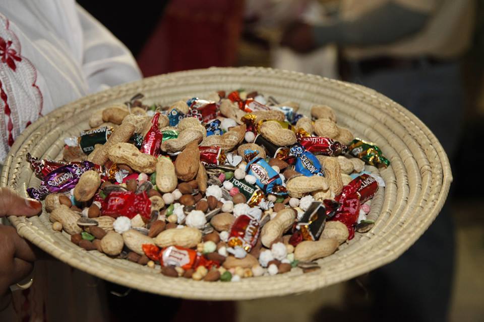 In the past, they were given dates, rice and wheat, ingredients used to make a traditional dish called Harees. but now they are usually given candy and nuts.