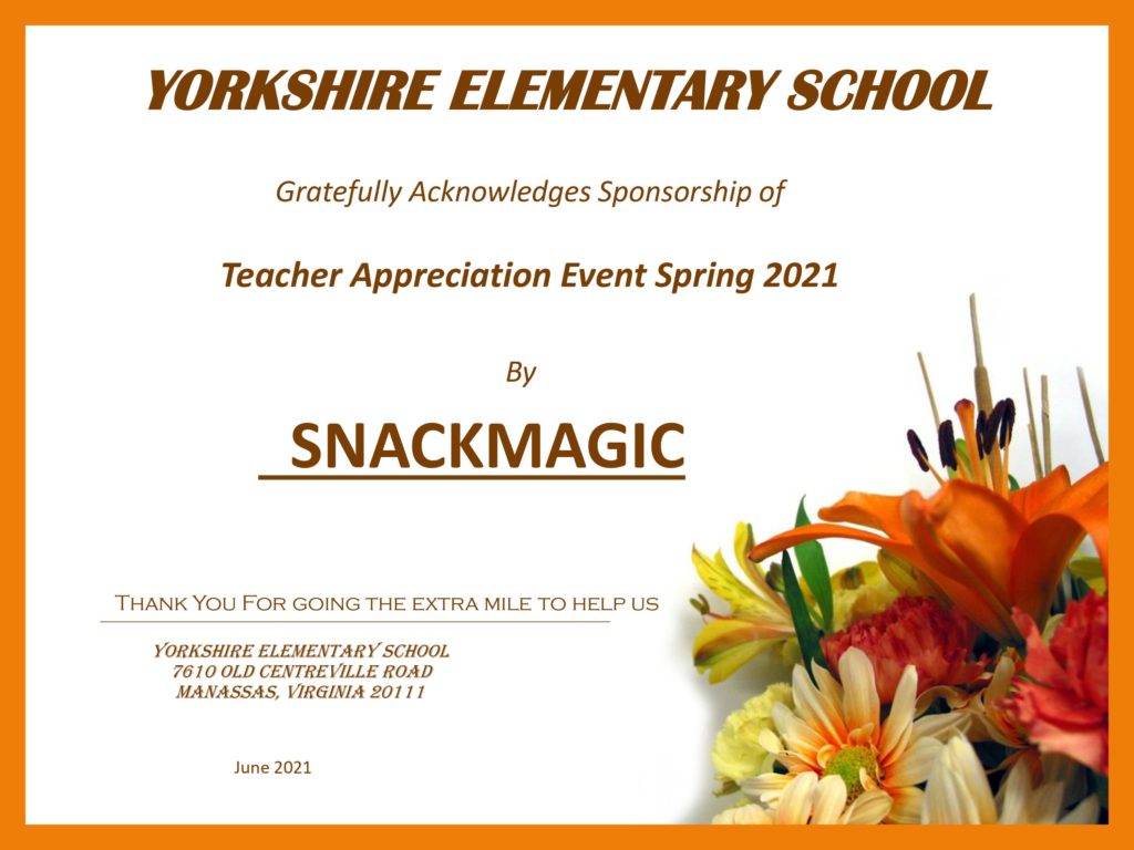 As a tribute to teachers & their supporting team, SnackMagic donated yummy treats for the hard-working teachers & staff at the Yorkshire Elementary School, Northern Virginia in the US. These awesome snacks were donated to 150 teachers & staff who work together to support the development of the child.